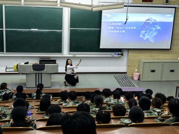 针对新生普遍面临的学业压力、人际交往困惑、自我认同怀疑等现实困扰,朱瑶结合大量贴近新生生活的鲜活案例,运用“冰山理论”逐一拆解分析。通过深入剖析日常互动场景中,个体在行为表现、情感反馈、观点表达等层面的具体呈现及内在关联,她引导同学们跳出表层现象,从心理深层维度理解互动行为背后的逻辑,助力新生以更全面的视角看待自身与他人的心理状态。