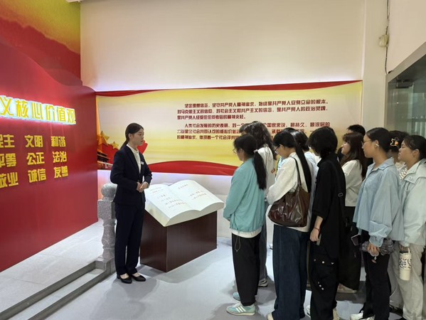 在讲解员的带领下,新生们沿着“用信仰托起梦想”“用责任撑起担当”“让使命超越生命”“信仰之光价值永恒”四大展区依次参观。通过图文展板、实物陈列与场景还原,大家系统了解了全国优秀教师王强教授的生平轨迹——从坚守马克思主义理论阵地的坚定立场,到深耕教育事业的责任担当,再到以生命践行信仰的崇高追求。这位“70后”教授将毕生精力投入马克思主义传播、研究与践行,用实际行动诠释了马克思主义者矢志不渝、追求真理、鞠躬尽瘁的精神境界。新生们在聆听中深刻体会到理想信念的磅礴力量,对“何为信仰、何为担当”有了更直观的认知。