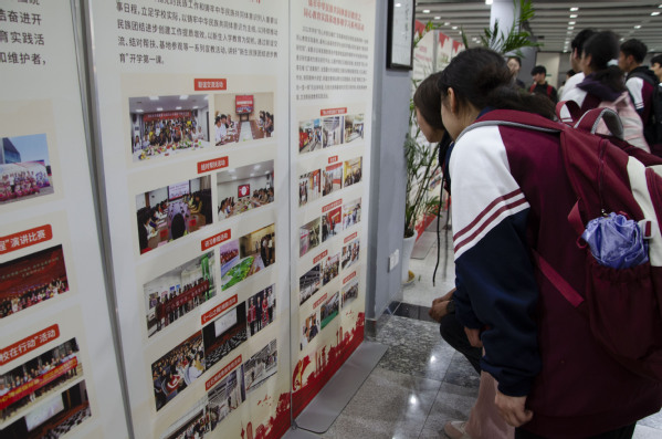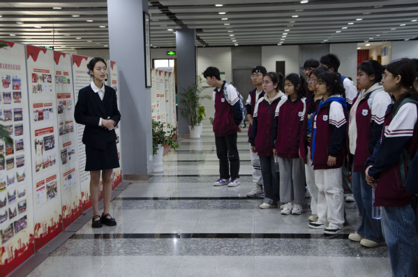 在省级“同心共育石榴红”教育实践基地,丰富的图文展板、生动的典型案例与沉浸式互动场景,全方位展现了各民族交往交流交融的历史脉络与民族团结进步事业的辉煌成就。志愿者结合鲜活事例,深入浅出阐释铸牢中华民族共同体意识的核心要义,讲述各民族守望相助的动人故事。同学们不时驻足交流、分享感悟,深刻体会“中华民族一家亲”的深厚情谊,坚定了维护民族团结的信念。