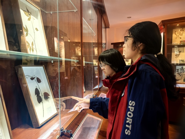 走进湿地学院植物与蝴蝶标本馆,其丰富馆藏让同学们目不暇接。植物标本馆内,百余件来自黄海湿地及不同生态区域的标本按类目整齐排列。志愿者结合盐城湿地生态保护实际,讲解植物在涵养水源、净化水质、调节气候中的关键作用,让“植物是湿地生态屏障”的知识变得直观可感。蝴蝶标本馆里,讲解员从蝴蝶翅膀的色彩成因、昆虫的变态发育过程,到昆虫授粉对植物繁殖、维持生物多样性的重要意义,层层深入解锁自然奥秘。同学们或俯身观察植物叶片的纹理,或凑近展柜细看蝴蝶翅膀的斑纹,在认识多样物种的同时,深刻理解了生态系统的关联性与保护生物多样性的重要性。