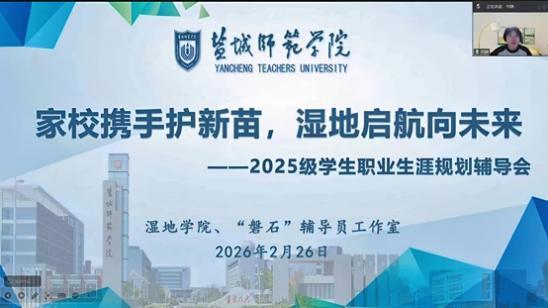 为帮助学生明晰职业发展方向,科学规划大学学业与未来发展道路,搭建家校协同育人坚实桥梁,2月26日,湿地学院联合“磐石”辅导员工作室,以“家校携手护新苗,湿地启航向未来”为主题,举办2025级学生职业生涯规划辅导会。本次辅导会由湿地学院党委副书记何静主持。