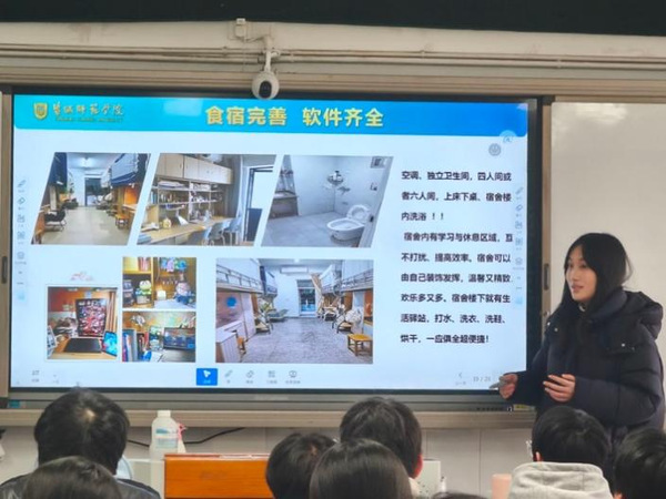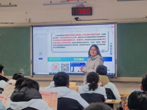 同期,杜雨欣同学也回到母校开展专项宣讲,重点面向高一新生进行分享讲解。她从盐城师范学院办学底蕴、专业建设优势、多彩校园生活,以及升学深造、就业发展等多个维度切入,全面介绍学校的育人理念与办学成就,帮助高一同学提前建立对高校的清晰认知。结合自身从高中到大学的成长经历,杜雨欣分享了实用的学习经验与成长感悟,细致解读报考政策、专业选择等高频热点问题,引导高一学子树立明确的学习目标,制定科学的备考规划,为未来的学业发展与升学选择筑牢基础。