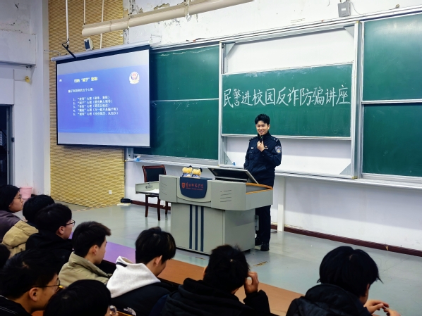 讲座现场,两位警官紧密结合高校电信网络诈骗真实案例,以案释法、以例析理,深入剖析诈骗分子的作案套路、作案手法与心理诱导伎俩。针对大学生群体心理特点与受骗高发场景,警官们系统梳理并解读了刷单兼职、冒充熟人领导、冒充公检法等典型骗局,精准剖析“获利心理”“面子心理”“恐惧心理”“侥幸心理”“认知偏差”五大心理陷阱,帮助师生从根源认清诈骗本质,绷紧反诈思想之弦。