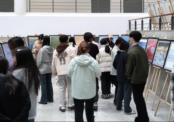 本次研学首站为湿地生态摄影展。展厅内,百余幅精品影像定格黄海湿地的万千气象与生灵百态。从珍稀鸟类的瞬间掠影到湿地滩涂的四季更迭,从微观生灵的鲜活细节到宏观生态的磅礴画卷,每一幅作品都生动展现了中国黄(渤)海候鸟栖息地——这一世界自然遗产的独特风貌与生物多样性之美。同学们驻足观赏、轻声交流,在视觉盛宴中直观感受湿地生态系统的蓬勃生机,深刻认识黄海湿地作为全球候鸟迁徙“国际机场”的重要生态价值。